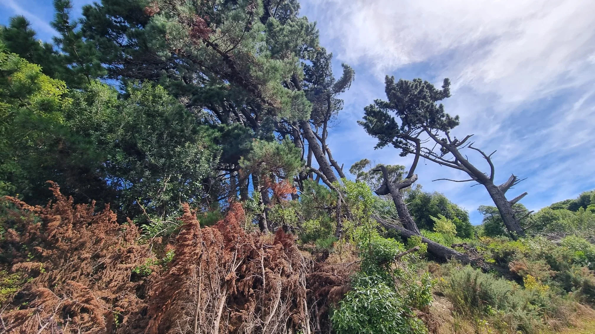 Lastly, make sure you plant in the right locations. Tauhinu has proved to be a valuable species on the driest upper slopes and lookout points at Manawa Karioi, where it is hard to establish much else. It's one of the most common species that are naturally establishing on the upper slopes of former farmland along the Skyline Walkway west of the Pōneke CBD. But it needs full sun, so if planted on the south side of established trees, it will quickly die.