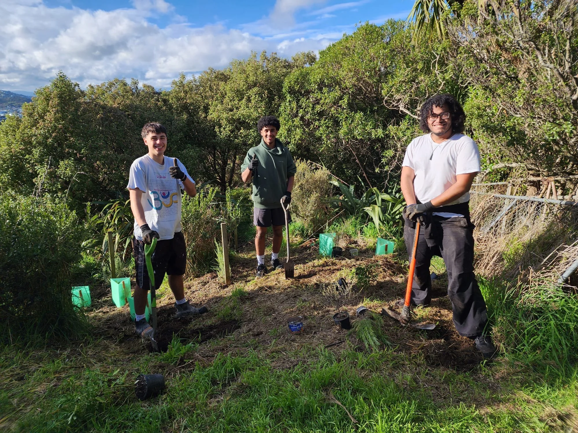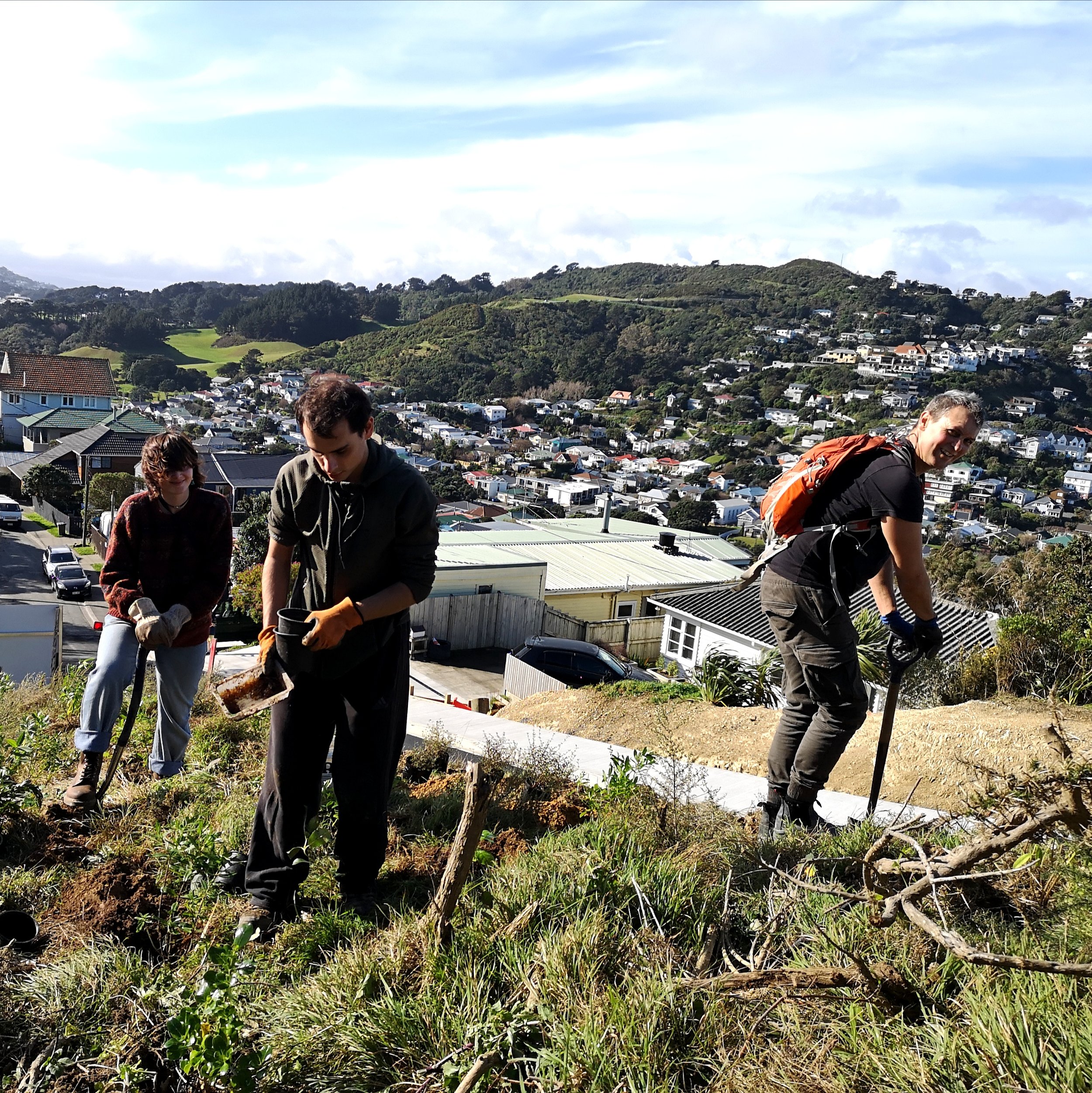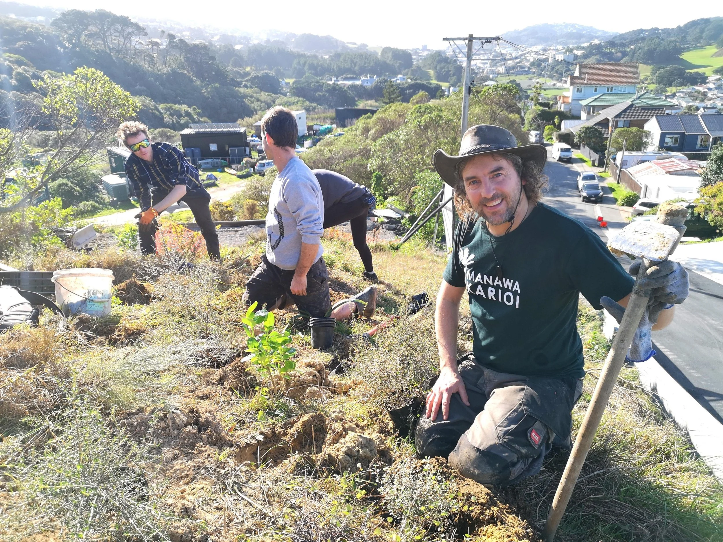 Firstly, you can't just plant everything that you want in the forest all at once. You have to start off with a small range of trees and shrubs that can handle lots of sun, dry soil in summer, and wind. Especially in windy Wellington. These "pioneer species" can range from kohuhu, tarata, ngaio and akiraho through to totara, rata and rewarewa.