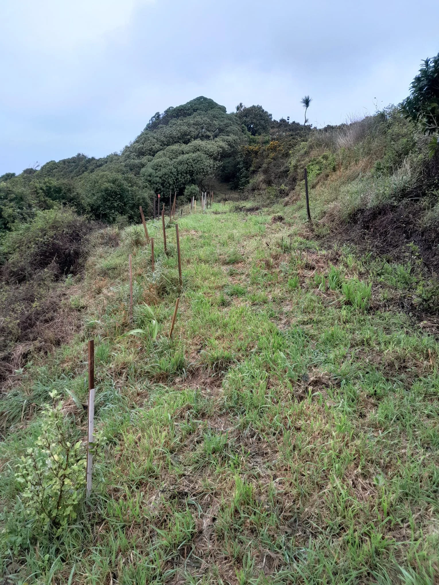 The other open area we will be planting later in the season is where the pine trees were felled over a year ago. Some of this area is exposed and dry, whilst some is more sheltered and suitable for larger trees. This work will also see the bottom section of the track Te Whare Ahuru realigned to an easier gradient. This section of track has been inaccessible for several years due to erosion and then pine tree felling.